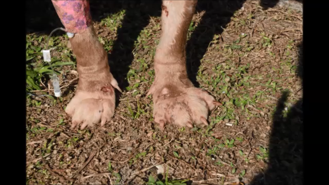Galleries SUNSETS VIDEO The day I was found January, 27th 2015 Image 1 of 23 January 27th 2015 Paul found me! I was dumped in a ditch on Sunset road in Lehigh Acres! Dumped like trash and left to die! I was used as a BAIT DOG and for breeding. I was closer to death than life. Recovery at GCHS Image 27 of 36 My paws and joints were infected and swollen